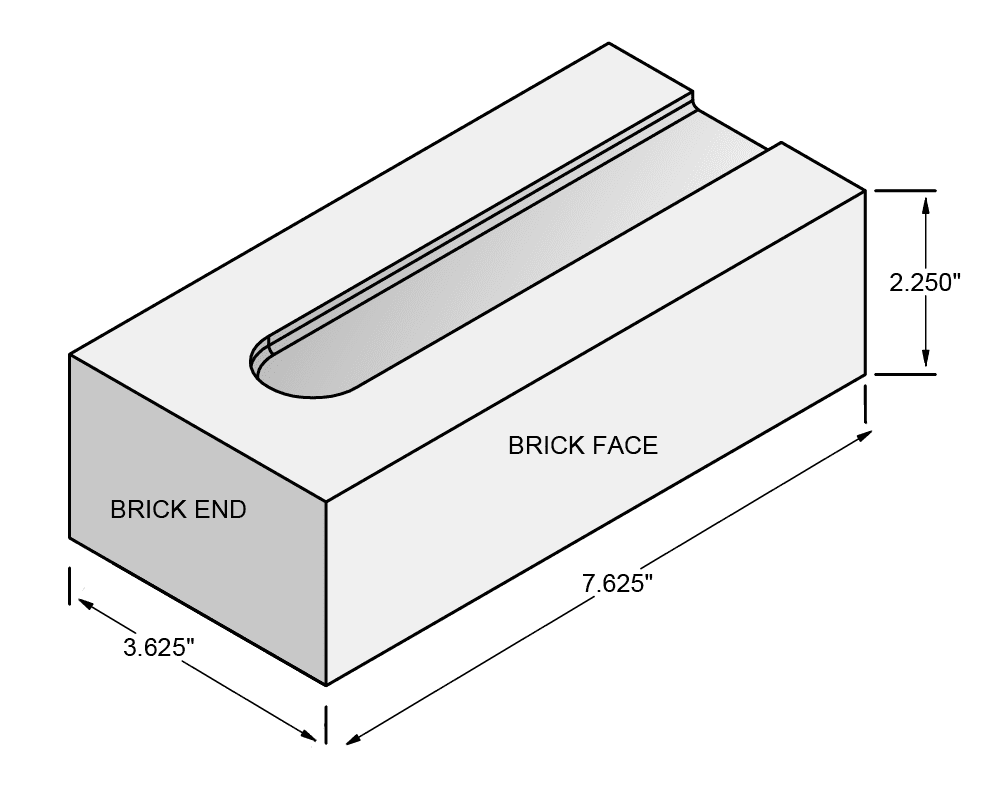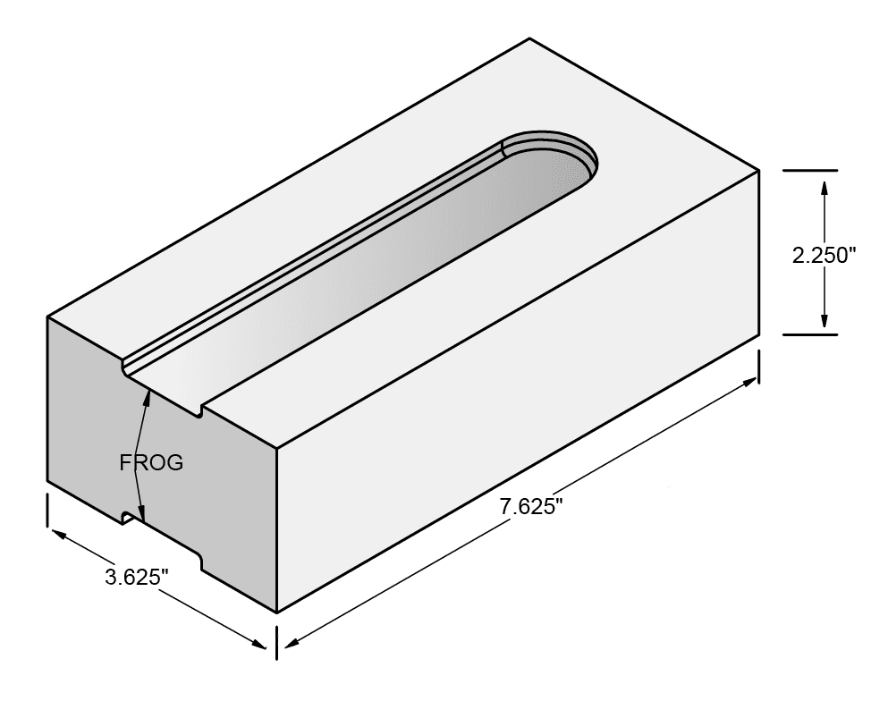 All Bilco bricks are King Size. Each brick has one brick face and one end face. Frogs allow mortar to grip the brick, which adds strength to the wall. The back side indicator helps the mason orient the brick.