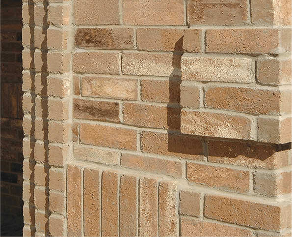 Rhodes is a unique application of buff bricks with brown and slightly orange highlights. This aesthetic helps evoke the natural world for a sturdy yet welcoming appeal.